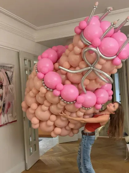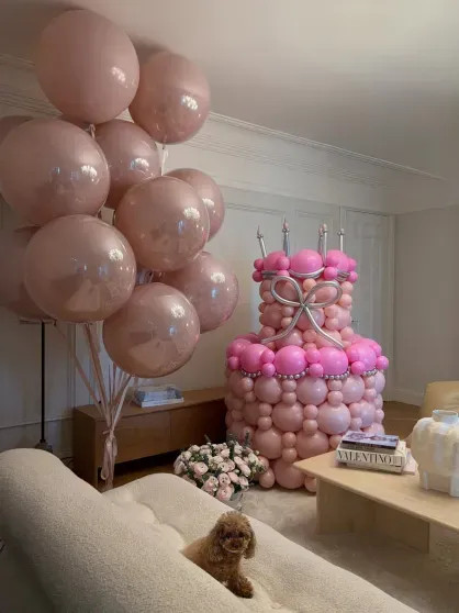 Арина с подругойДома для Арины родители устроили сюрприз с "тортом" из розовых воздушных шаров и подарками.