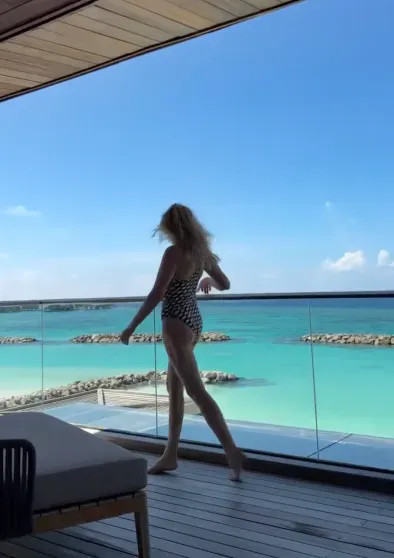 Рудковская с семьёй остановилась на вилле The St. Regis Maldives Vommuli Resort и сняла ролик на террасе, позируя в слитном купальнике и солнцезащитных очках. "Мой первый раз на этой вилле был четыре года назад, и теперь я вернулась", — написала она.