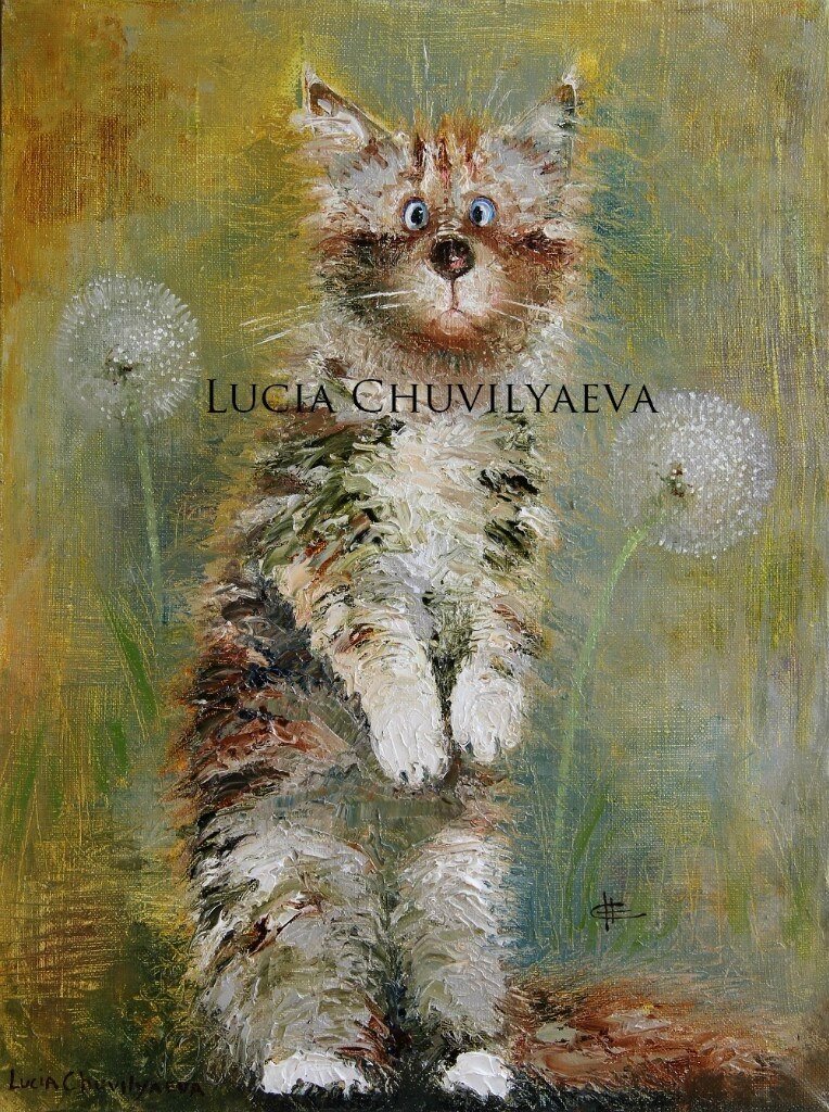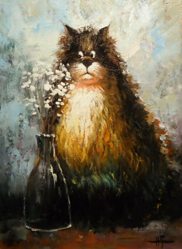 Но еще одно важное направление их творчества - коты. Иногда они появляются вместе с ангелами, хотя и сами по себе очаровательны...