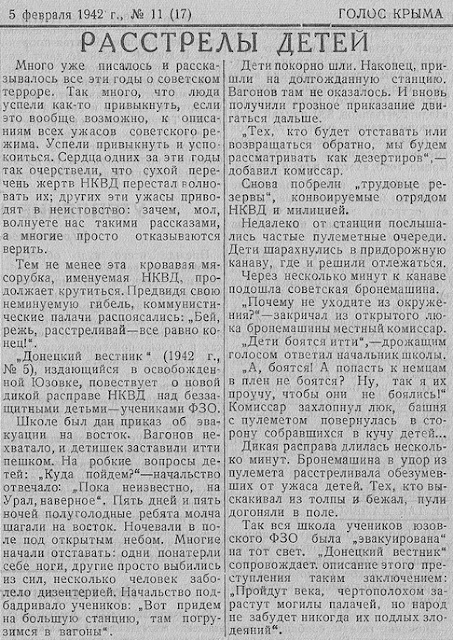 Информация о расстреле учащихся ФЗУ в коллаборационистской газете