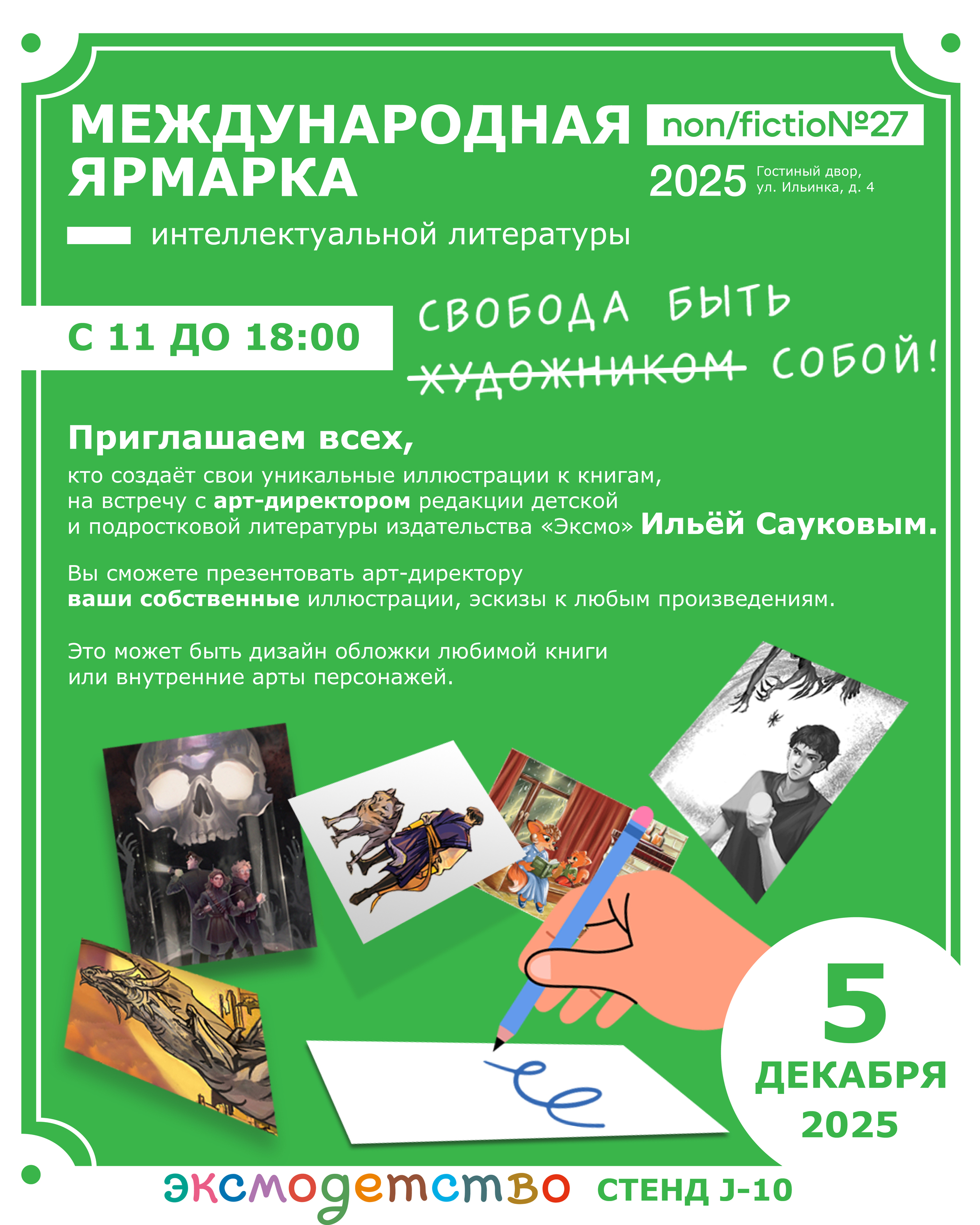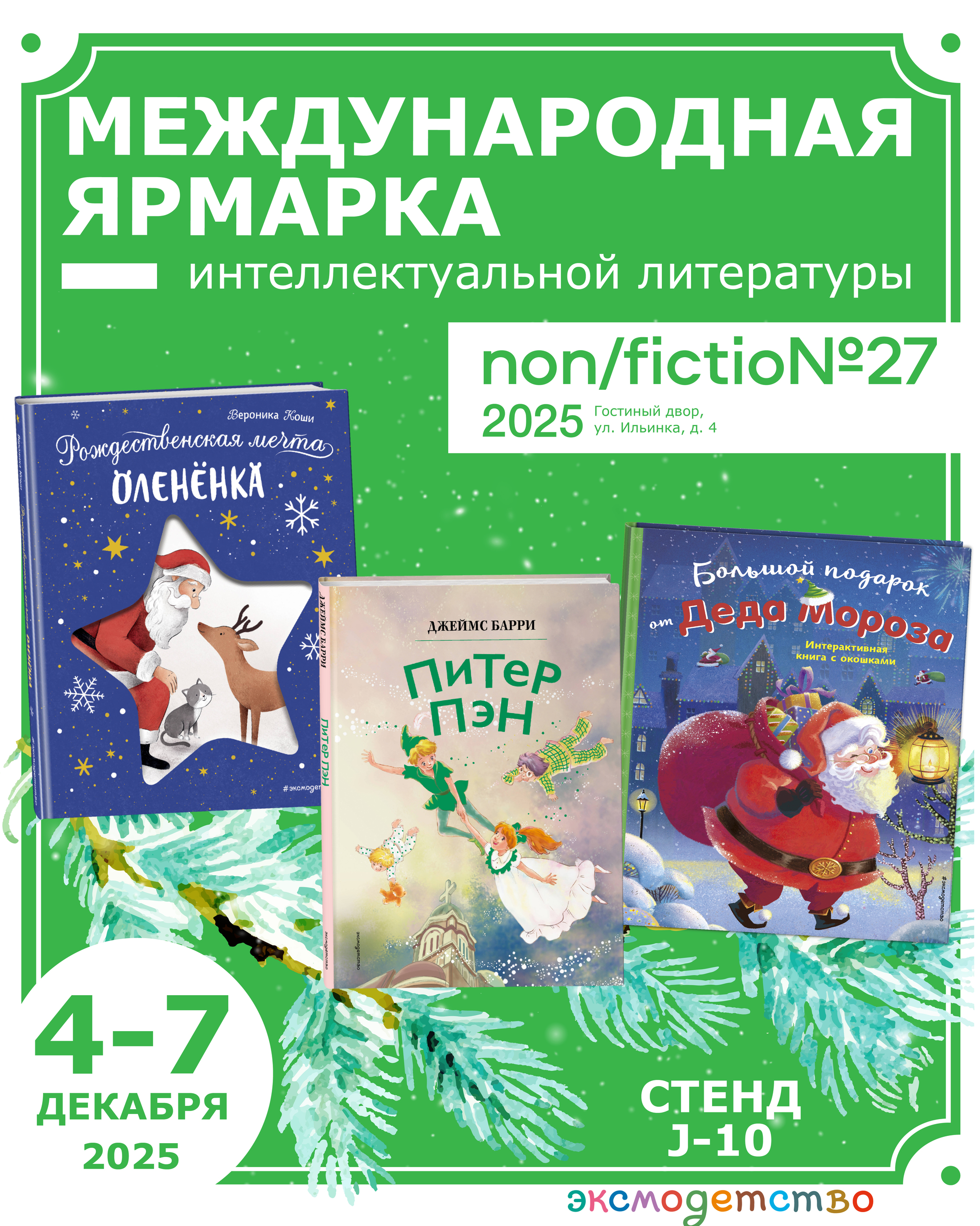 Встретьте его с 4 по 7 декабря в Гостином Дворе на ярмарке non/fiction. Творческие встречи, автограф-сессии, лучшие книги и атмосфера праздника — ваш рецепт идеального декабря. Издательства «Эксмодетство» и «Freedom» традиционно подготовили насыщенную программу и книжные новинки.