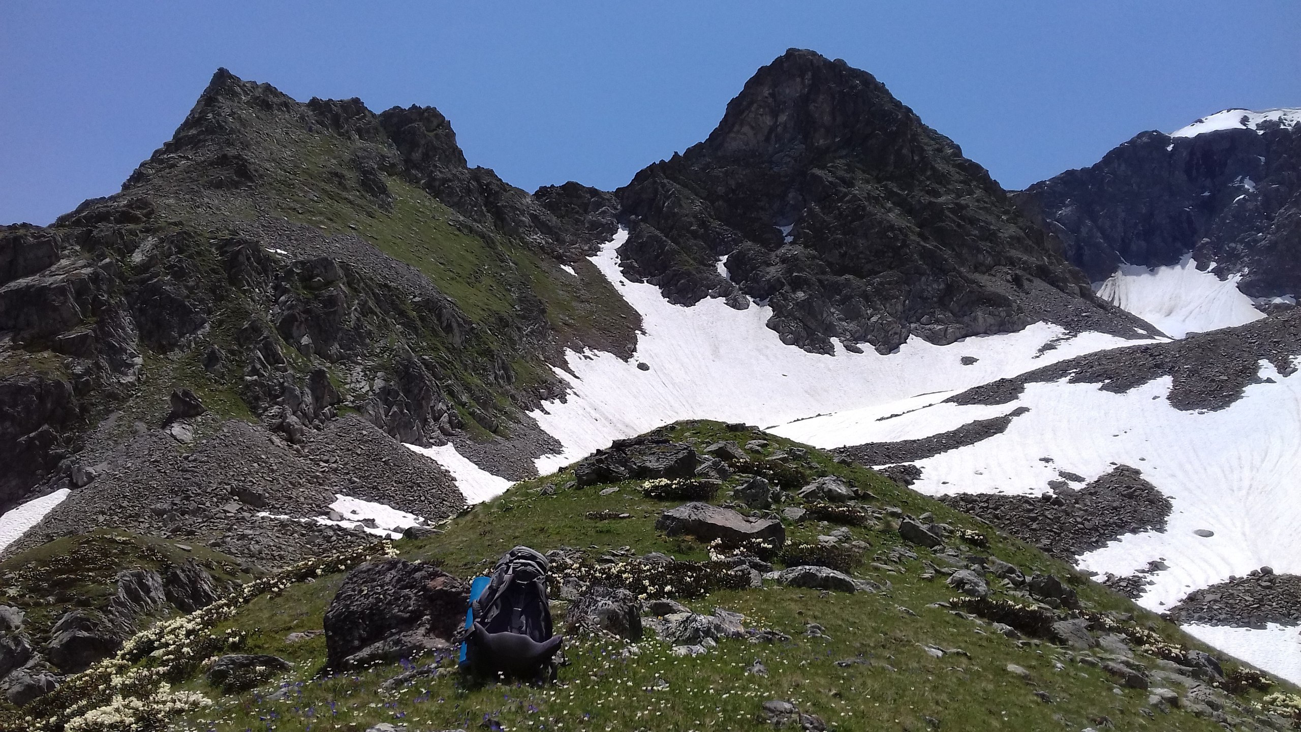 Утром третьего дня мы покидаем озеро Луган и держим путь к озеру Закан . Погода, по-прежнему, отличная, вокруг идеально чистый небосвод, слепящее солнце и альпийские луга склонов хребта Юха. Скоро это кончится, ибо нам предстоит идти в зону +3000.